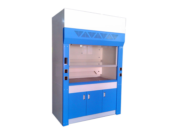 柜式排風(fēng)罩俗稱通風(fēng)柜,與密閉罩相似。小零件噴漆柜、化學(xué)試驗(yàn)室通風(fēng)柜是柜式排風(fēng)罩的典型結(jié)構(gòu)。大型室式通風(fēng)柜,一側(cè)面完全敞開,操作人員在柜內(nèi)工作,主要用于大件噴漆、粉料裝袋等。通風(fēng)柜的工作口對柜內(nèi)的氣流分布影響很大,氣流分布又直接影響柜式排風(fēng)罩的工作效果。